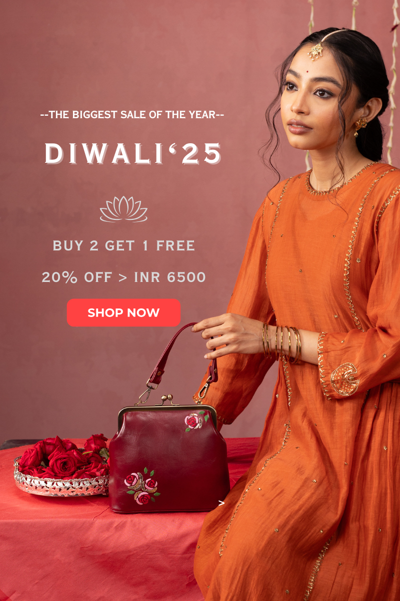 Let your feet feel the sweet chill of morning dew. Look up and soak the warmth of morning sun. Immerse yourself into the fragrance of roses and the chirping of playful birds. Want to carry this refreshing feeling wherever you go? Slide in into breezy silhouettes and add a pop of refreshing colors with our curated collection of light-weight sling bags, hand embroidered in soft pastel florals.