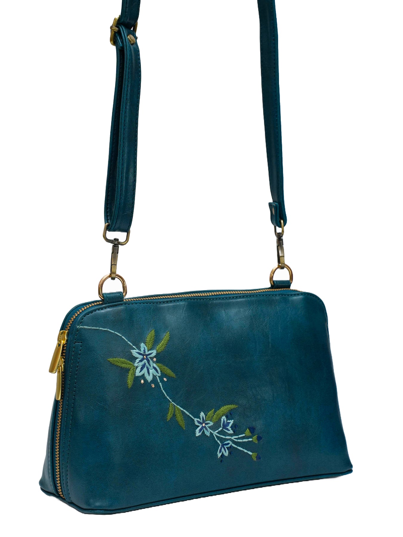 Drifting Bloom Hand Embroidered Lodhi Sling - Blue