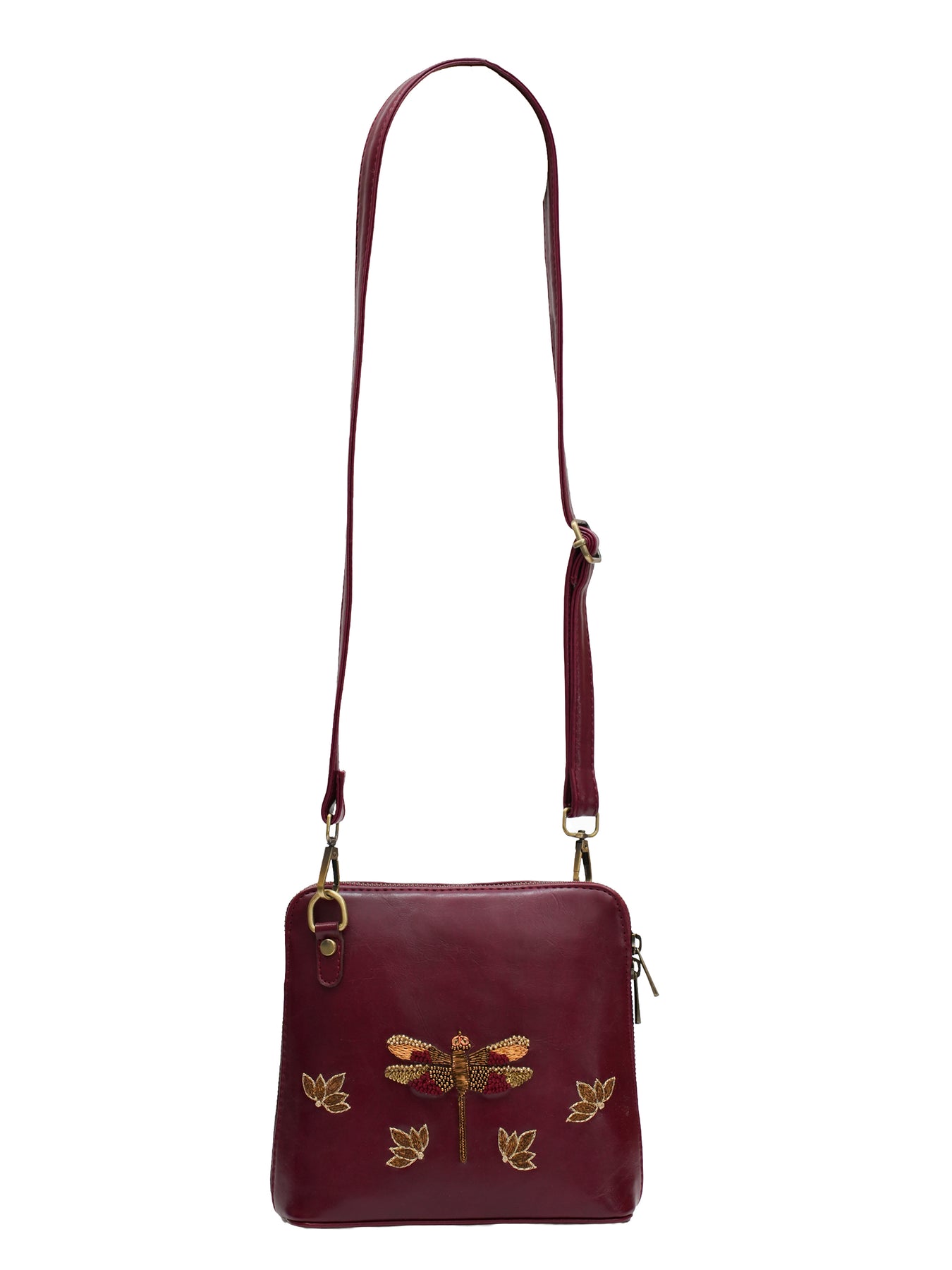 Dragonfly Hand Embroidered Colaba Sling - Maroon