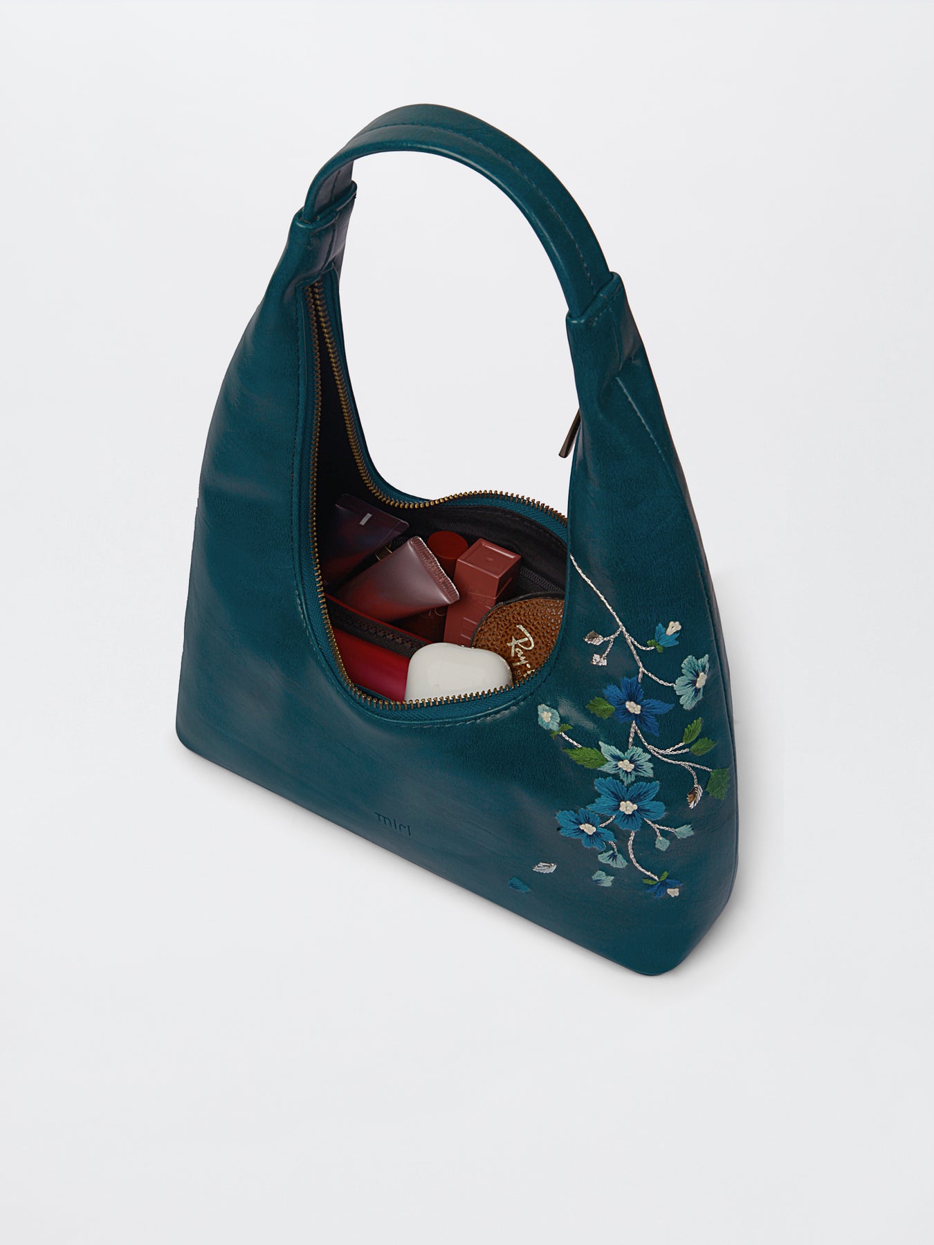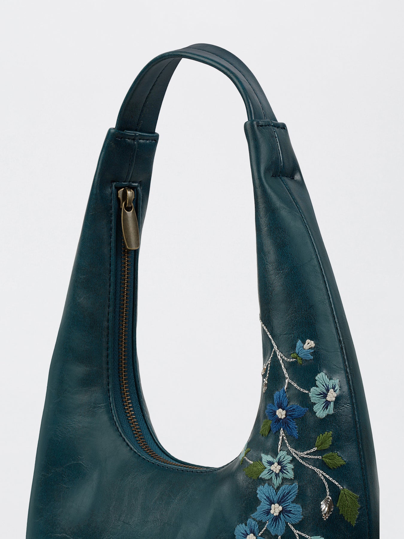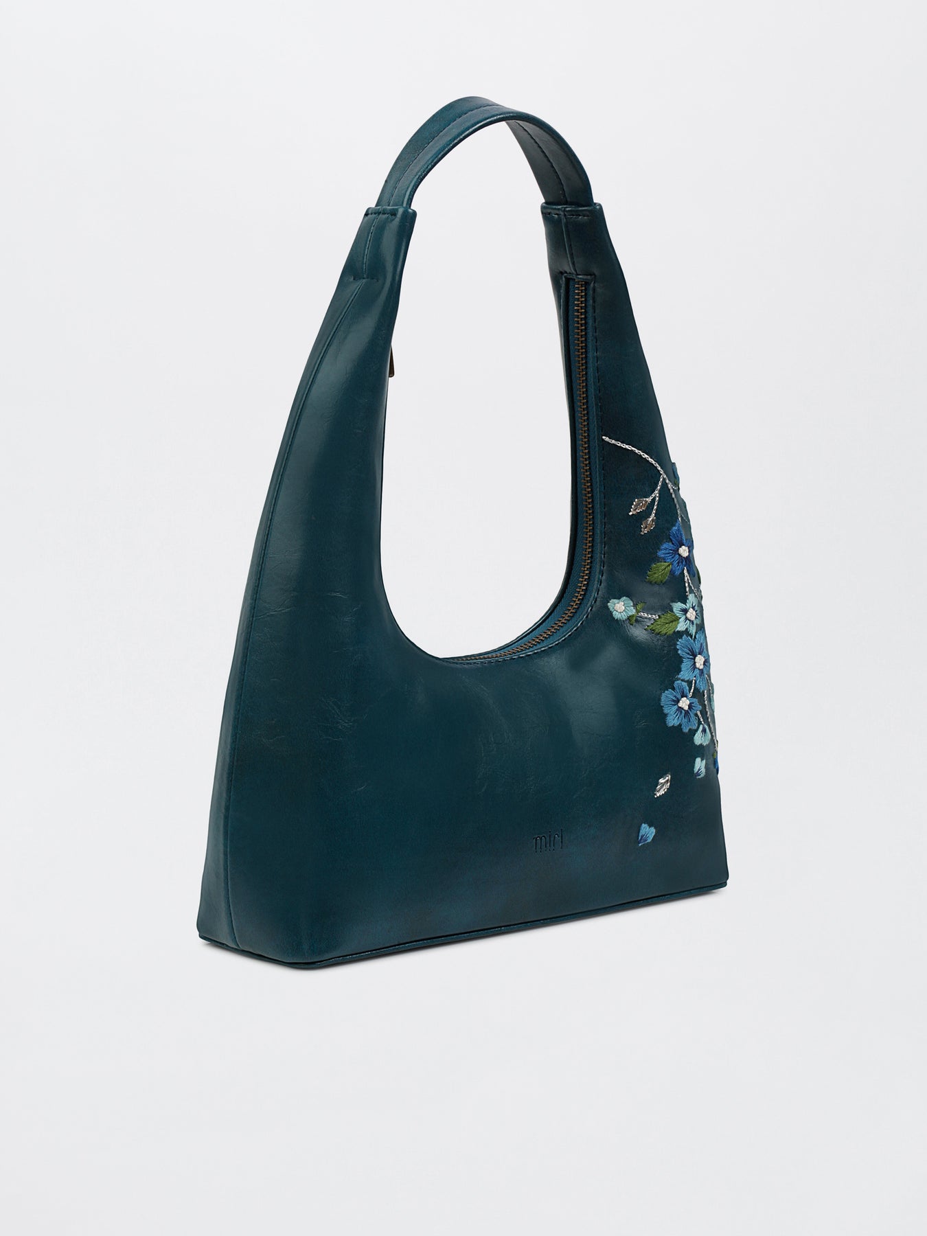 Misty Petals Hand Embroidered Shoulder Bag - Teal