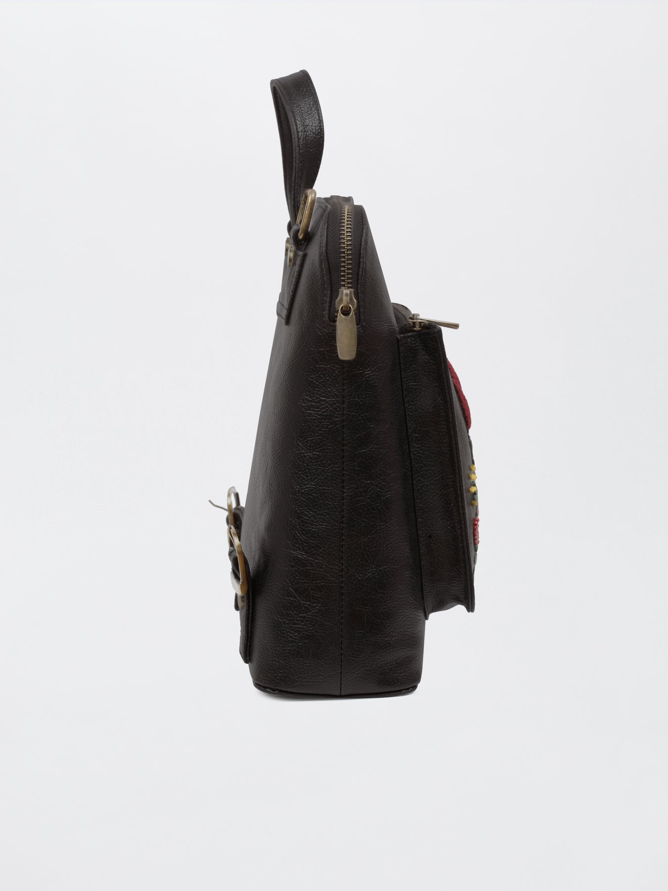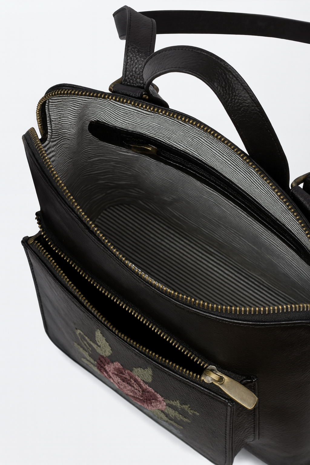 Rose Cross Stitch Convertible Backpack Cum Sling