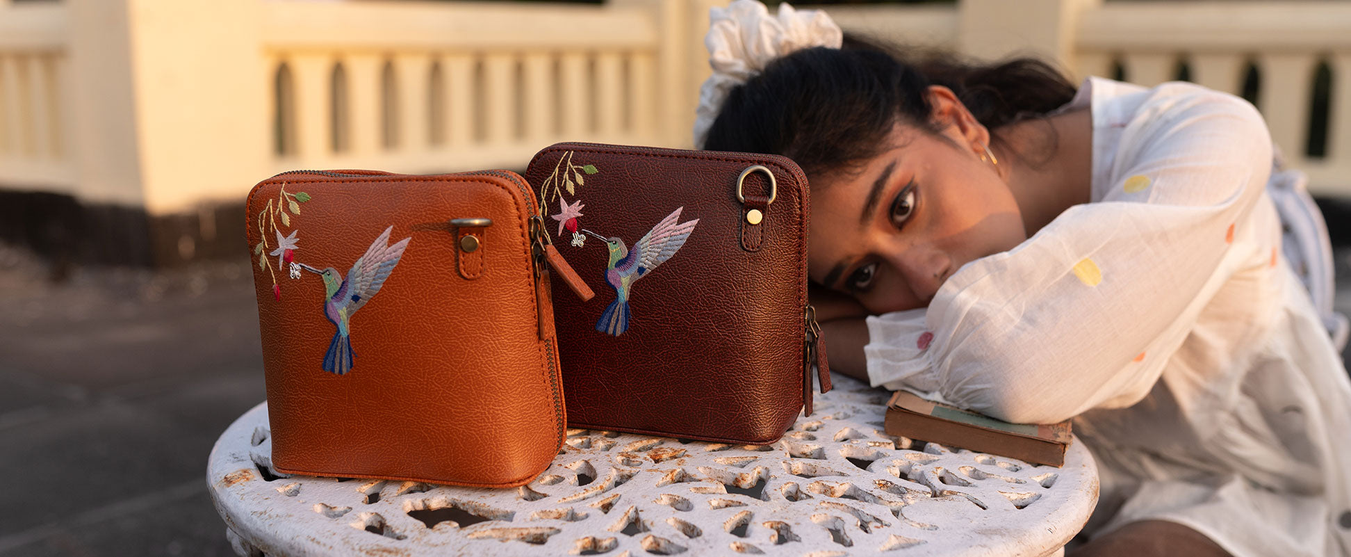 Explore our exquisite handcrafted sling bags, ranging from timeless classics to vibrant embroideries, allowing you to express your unique style effortlessly for every occasion.