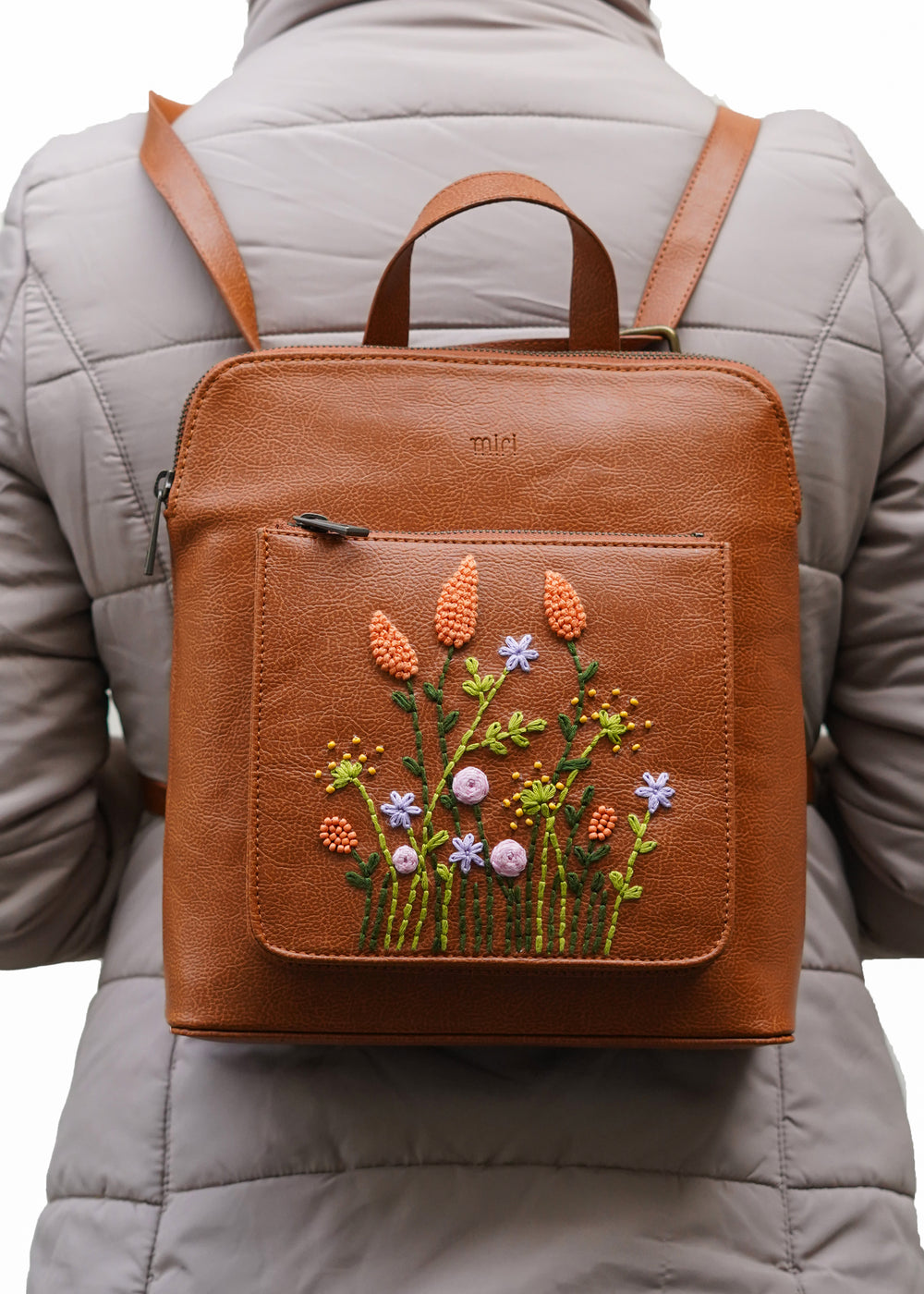 - Front zipper pocket with intricate hand embroidery