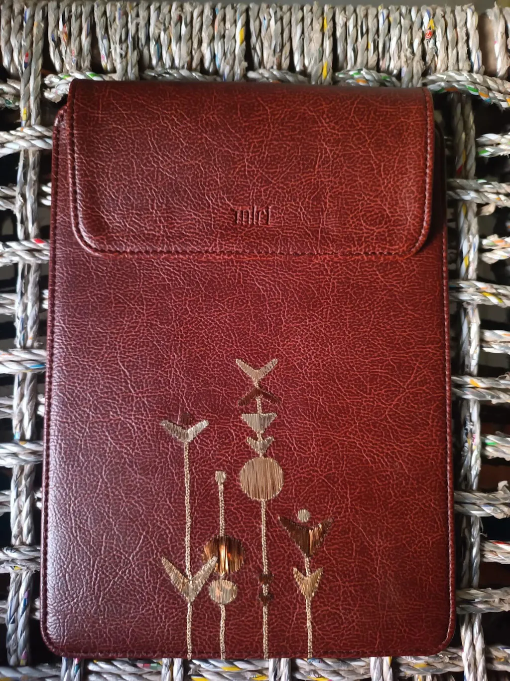 The laptop sleeve is simple, sleek and stylish. The inside is lined with suede to provide extra protection and the flap is secured by magnetic clasps.